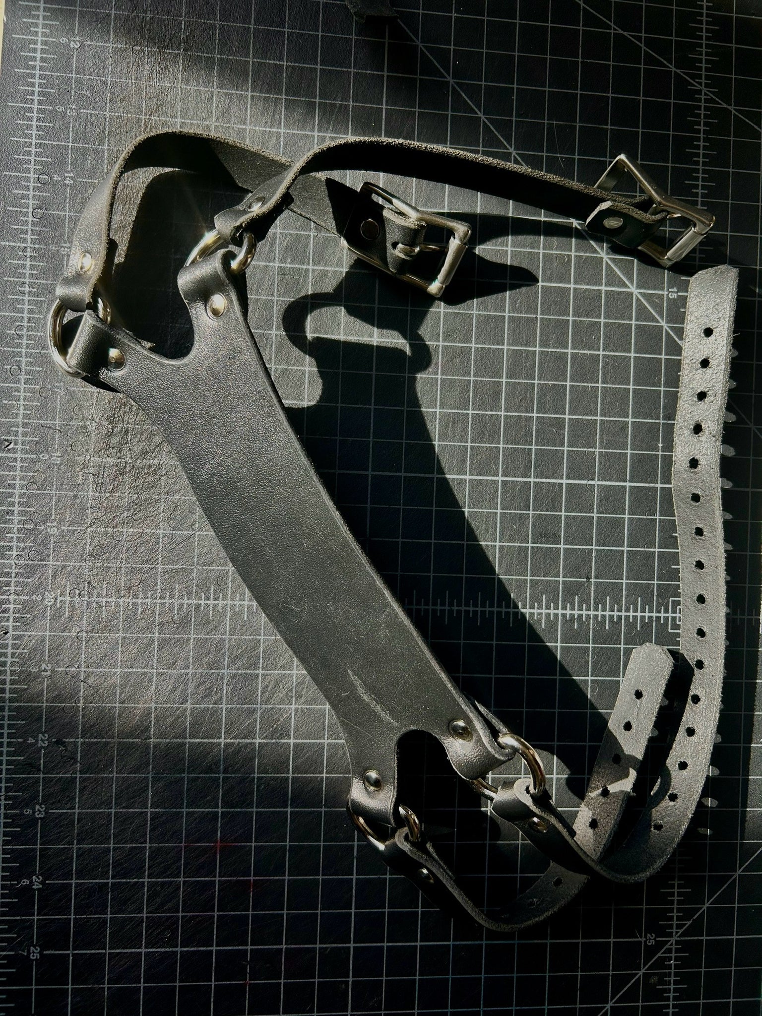 mouch piece is a 9/10 oz leather with 6/7 oz straps, and stainless steel hardware.