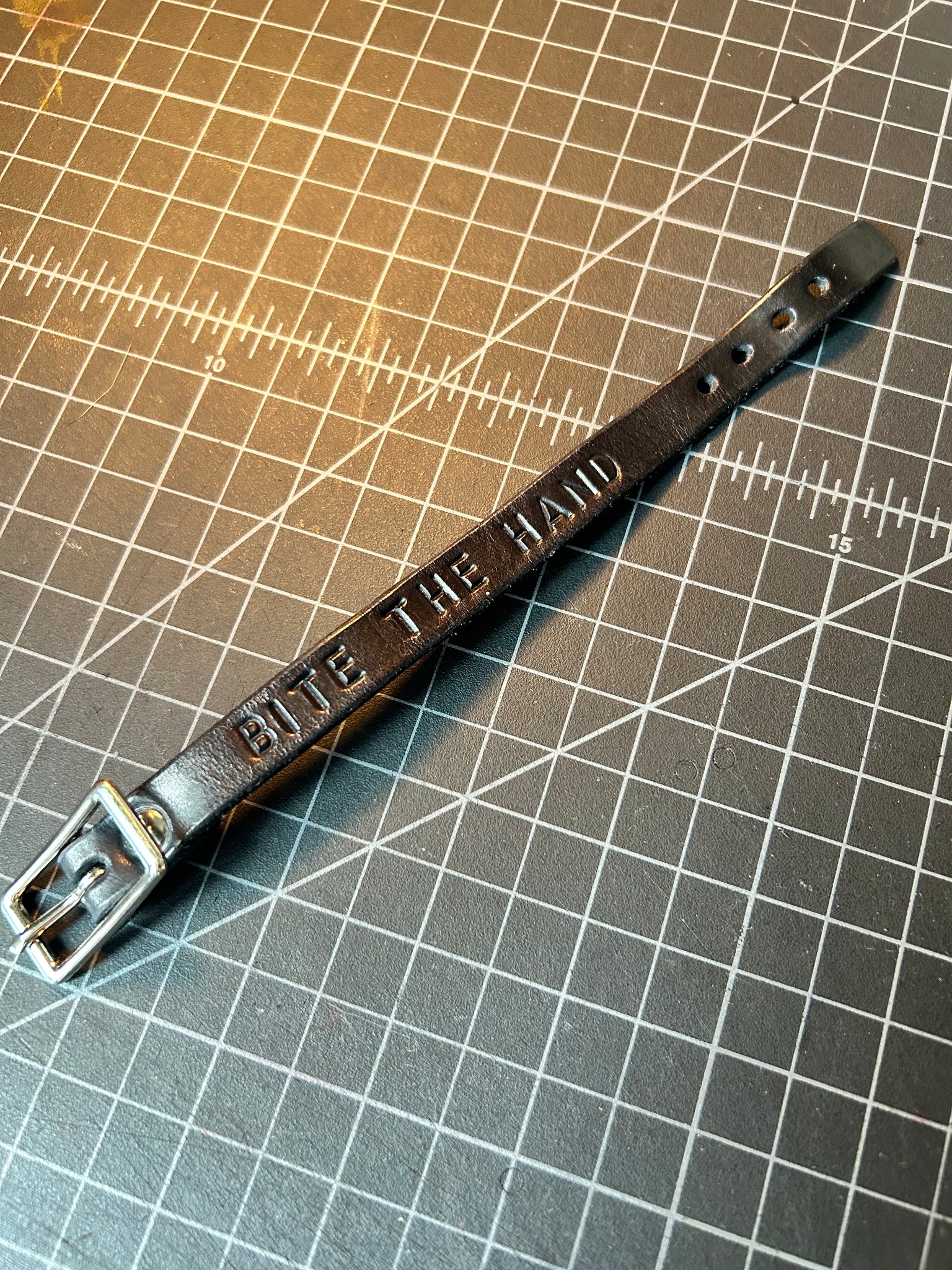 FOR ALL CUSTOM TEXT OPTIONS: please email transformleatherco@gmail.com with your order number and the text you would like on your bracelet. Maximum of 12 characters