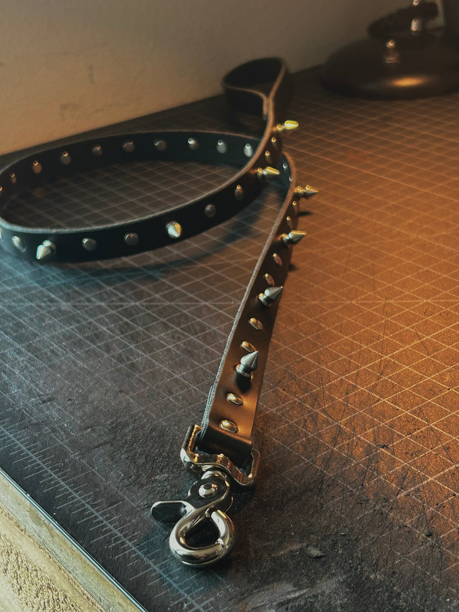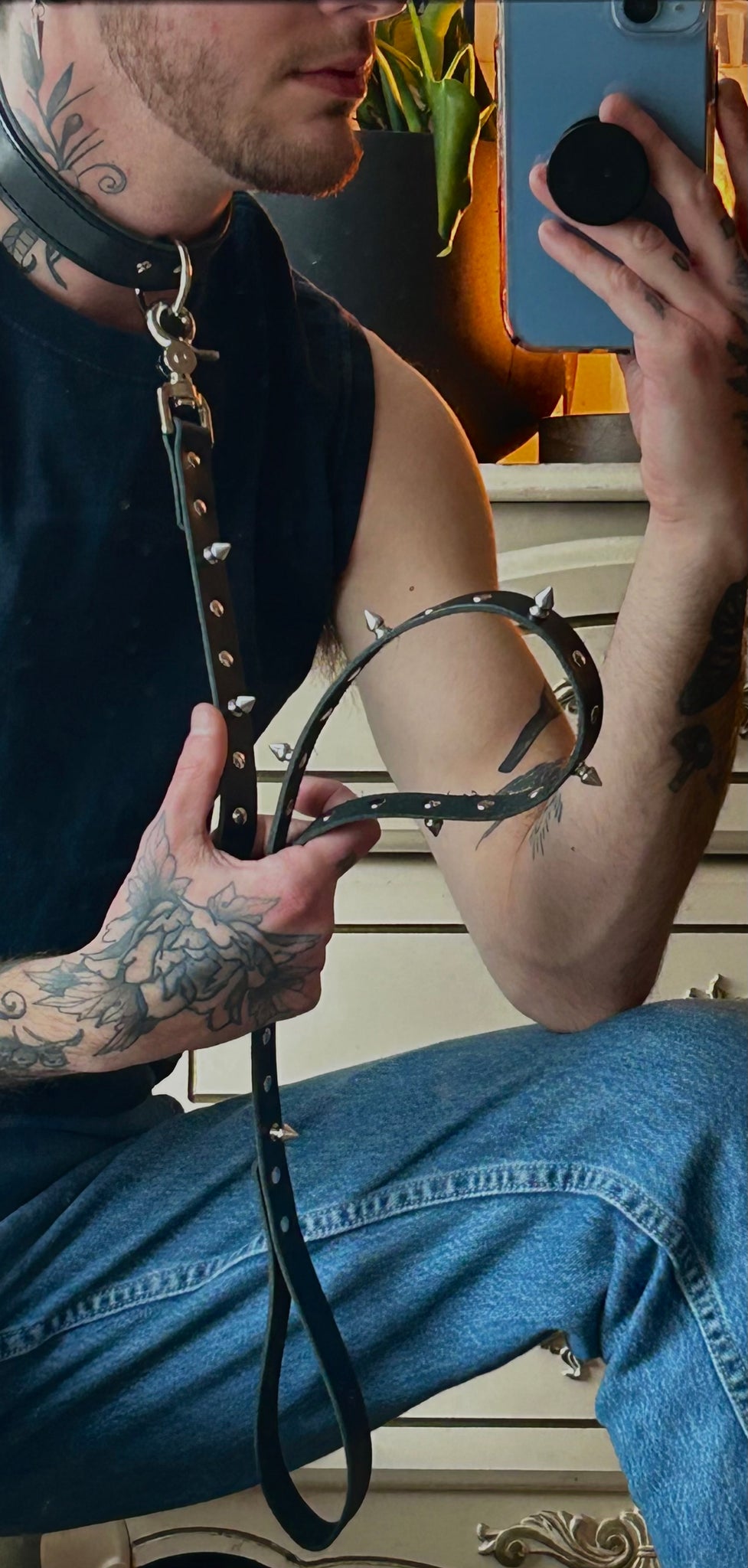 3/4” inch wide leash, with alternating steel rivets and spikes. perfect for your reckless sub.